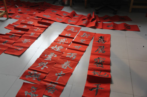1月24日,在新春佳節(jié)來臨之際,河南大地集團(tuán)邀請(qǐng)部分國(guó)家級(jí)、省級(jí)書法家協(xié)會(huì)會(huì)員到集團(tuán)義寫春聯(lián),為廣大員工送去新春的祝福。 紅春聯(lián),紅笑臉。在義寫春聯(lián)現(xiàn)場(chǎng),應(yīng)廣大員工所需,書法家們凝神靜氣,揮毫潑墨,揮就一幅幅筆酣墨飽、寓意深刻的新春佳聯(lián),大紅的福字,吉祥的喜字,構(gòu)成一道獨(dú)特的年俗文化風(fēng)景線。活動(dòng)持續(xù)三個(gè)多小時(shí),300多幅春聯(lián)被大家一搶而空。 “還是手寫的春聯(lián)最有年味兒。”一幅幅不同風(fēng)格的春聯(lián)讓聞?dòng)嵍鴣淼膹V大員工喜笑顏開,贊口不絕。