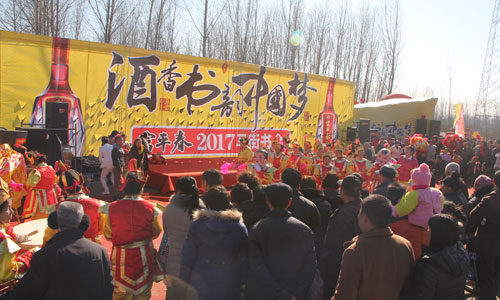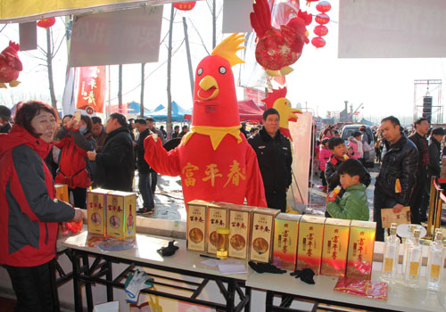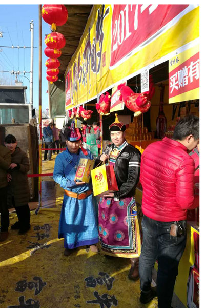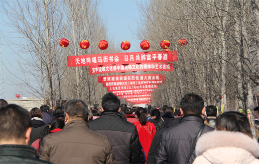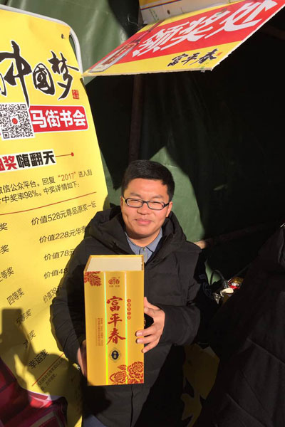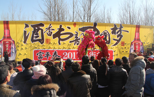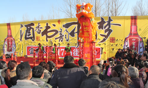 富平春馬街書會(huì)感恩大派送側(cè)記(二) 正月十三上午,筆者還未到馬街,就被一陣喧天的鑼鼓聲所吸引,在馬街書會(huì)入口富平春二號(hào)展臺(tái)處,一場(chǎng)盛大的文藝匯演正在精彩上演,這是富平春公司為回報(bào)社會(huì),傾情百姓的感恩大派送活動(dòng)現(xiàn)場(chǎng)。一邊是火爆的掃碼中獎(jiǎng)活動(dòng),一邊是火辣的激情演出,吸引著八方來(lái)客蜂擁而至,把整個(gè)現(xiàn)場(chǎng)圍得水泄不通。 龍騰獅躍歌盛世,鑼鼓聲聲震乾坤。演出現(xiàn)場(chǎng),陣容強(qiáng)大,場(chǎng)面壯觀的《龍騰九宵》《盤鼓鬧春》等節(jié)目,激越澎湃,催人奮進(jìn);驚心動(dòng)魄,扣人心弦的高空舞獅、獅口噴字,不時(shí)地把匯演推向高潮,串燒、戲曲、民歌、舞蹈輪番上陣,場(chǎng)面熱烈,蕩人心魄,此起彼伏的掌聲、歌聲、笑聲、歡呼聲匯成了一片歡樂(lè)的海洋。期間,富平春還精心準(zhǔn)備了撲克牌、吉祥物等精美禮品,與現(xiàn)場(chǎng)群眾進(jìn)行現(xiàn)場(chǎng)互動(dòng),很受大家歡迎和喜愛(ài)。 隨著人群,筆者走進(jìn)書會(huì)現(xiàn)場(chǎng),大型彩虹門“富平春2017馬街書會(huì)”歡迎著八方來(lái)客,“天地同唱馬街書會(huì),日月共醉富平春酒”等大紅條幅格外引人注目,路兩旁及書會(huì)現(xiàn)場(chǎng)掛滿了大紅的燈籠,這是富平春義務(wù)為書會(huì)做的精心布置,為書會(huì)增添了喜慶熱烈的氣氛。 在中華曲藝展覽館東側(cè)富平春主會(huì)場(chǎng),人潮涌動(dòng),熱火朝天,品酒的、掃碼的、中獎(jiǎng)的,場(chǎng)面火爆嗨翻天。現(xiàn)場(chǎng)工作人員非常忙碌,為來(lái)客提供周到細(xì)致的服務(wù),兩個(gè)吉祥物金雞也顯得格外歡快,不時(shí)地向過(guò)路群眾問(wèn)好,引來(lái)大家紛紛與其合影留念。在趕會(huì)游玩的同時(shí),隨便拿起手機(jī)掃一掃,就會(huì)中得實(shí)實(shí)在在的大獎(jiǎng),那是怎樣的一種心情,激動(dòng)、高興、感恩……怎一個(gè)“樂(lè)”字了得。“趕快發(fā)送朋友圈,讓大家都來(lái)參與”一位中得一等獎(jiǎng)的小伙立馬把他中獎(jiǎng)的喜訊發(fā)到了朋友圈?!拔抑写螵?jiǎng)了”“富平春為大家?guī)?lái)了實(shí)惠,帶來(lái)了情趣!”“富平春酒喝著真美!”在現(xiàn)場(chǎng),不時(shí)聽(tīng)到來(lái)客一邊品咂,一邊贊口不絕。 天色漸晚,藝人說(shuō)客慢慢散去,但富平春帶給書會(huì)的歡快、熱烈、歡騰的氣息經(jīng)久不息!