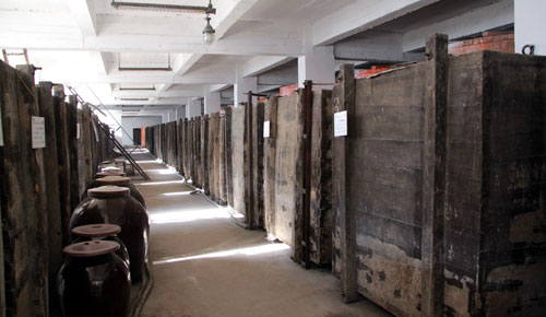 2月9日,在馬街書會富平春酒業主會場前,一只古色古香的巨大的家伙引起了許多趕會人的好奇!這是啥?叫啥?干啥用的?路過的人看了又看甚覺神奇! 走過這里的人們都慢下腳步來聽講解,了解這大家伙有啥秘密。據介紹,這是富平春酒業最具特色的木海,就是木質做的儲酒用的寶貝。這些木海都是文物級的老古董,是古人儲藏美酒最好的容器,它有一個神秘的特點——儲水漏,藏酒而不漏。木桶里邊由100層以上桑皮紙所制作,長期儲存白酒能夠保持酒質的原色原味,具有抗滲漏,耐酸蝕,造型美觀等特點。這些木海中儲藏的大多是30年以上的老酒,其良好的透氣性、天然性使微生物群體既活躍又豐富,是賈湖酒業釀造出好酒的關鍵所在。這種木海美酒是市面上是沒有的。 面對可容納4600公斤陳年佳釀的木海,令前來品嘗富平春美酒的趕會人在贊嘆美酒的同時,都被這手工制作的文物級釀酒工具、被中華博大精深的釀酒文化深深折服,流連忘返!